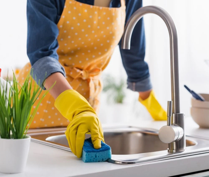 • Sink & Fixtures: Scrub and polish sink, taps, and handles.